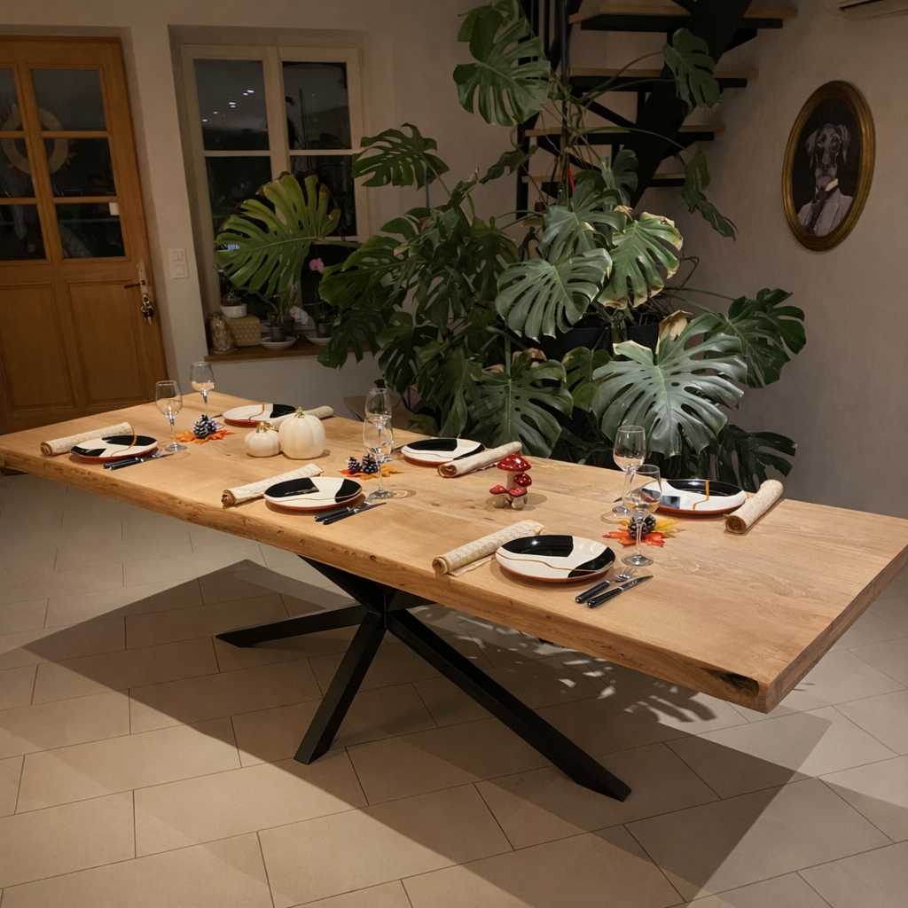 Votre table idéale vous attend. Nous créons des tables de salle à manger uniques, avec des plateaux en bois massif distinctifs, qui deviendront le cœur de votre foyer. Si vous aimez les grandes tablées et les meubles qui racontent une histoire, contactez-nous pour transformer votre vision en une réalité durable et élégante, fabriquée avec passion à Mont sous vaudrey, France.